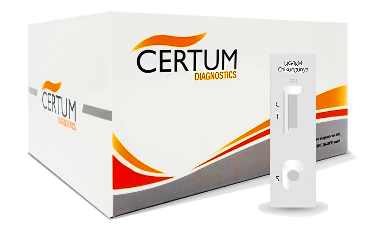 La prueba Chikungunya IgG/IgM Rapid Test Cassette (Sangre entera/Suero/Plasma) es un inmunoensayo cromatográfico diseñado para la detección cualitativa de anticuerpos IgG e IgM contra el virus Chikungunya en muestras humanas de sangre entera, suero o plasma. La prueba Chikungunya IgG/IgM Rapid Test Cassette es una solución confiable con su alta sensibilidad, especificidad y rapidez en los resultados (15 minutos), esta prueba es una herramienta invaluable para los profesionales de la salud que buscan mejorar el diagnóstico y tratamiento de la infección por Chikungunya.