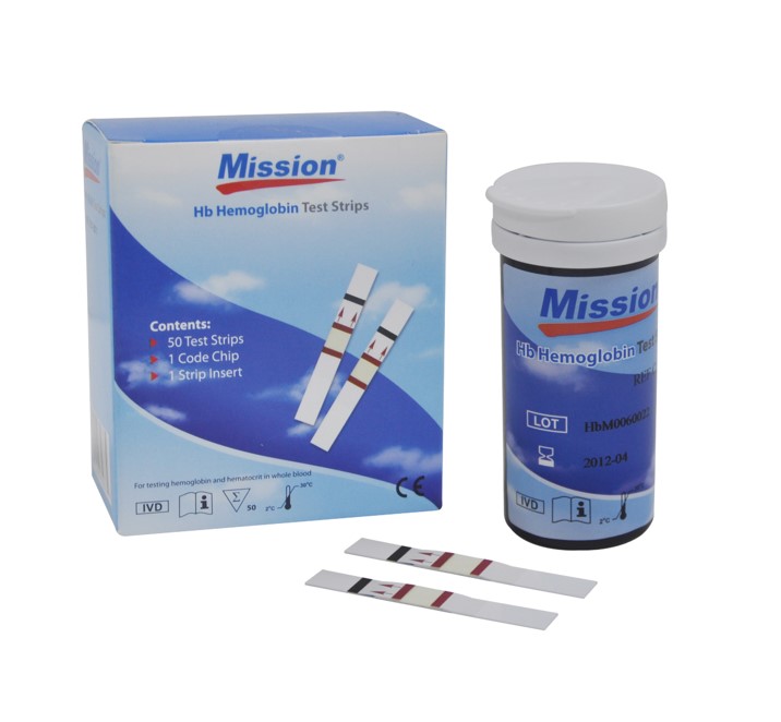Tiras Reactivas Mission para Medidor de Hemoglobina HB, sirven para diagnóstico de hemoglobina y hematrocitos en sangre entera.